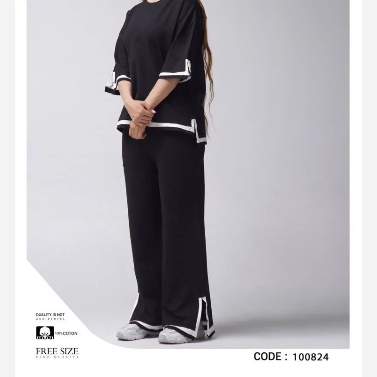 🔴مدل: تیشرت و شلوار مدل چاکدار 🔵جنس: پنبه تیپ لاکرا سنگین درجه یک 🟠سایز محصول: فری سایز از 38 تا 44 ⭐کیفیت و تنخور فوق العاده⭐
