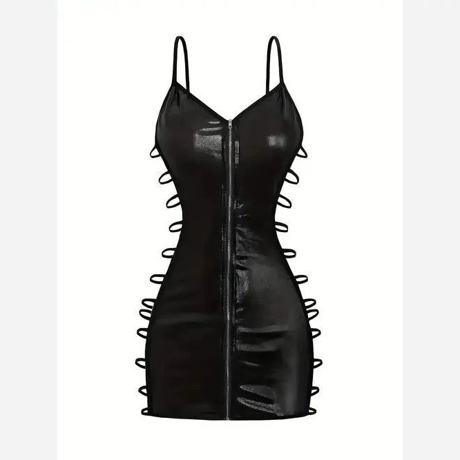 پیراهن دیسکویی جلو زیپدار تک رنگ مشکی