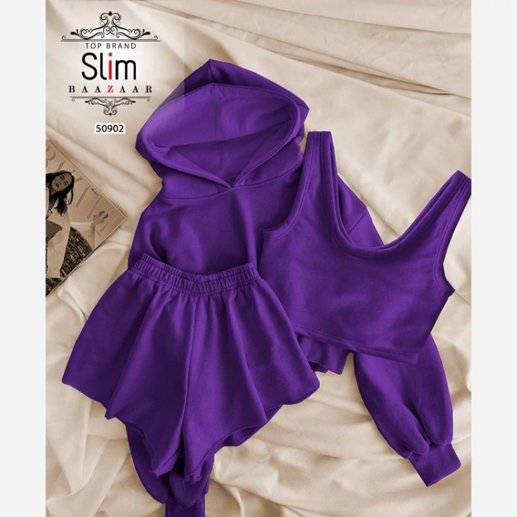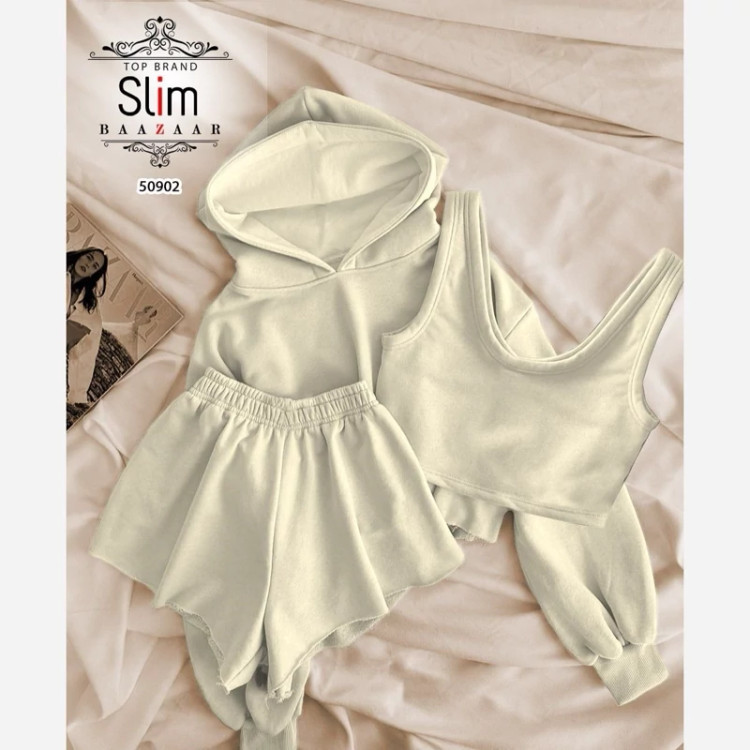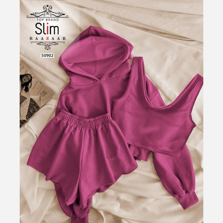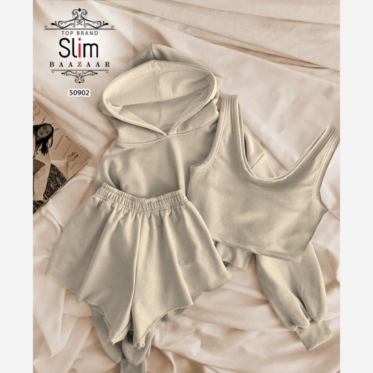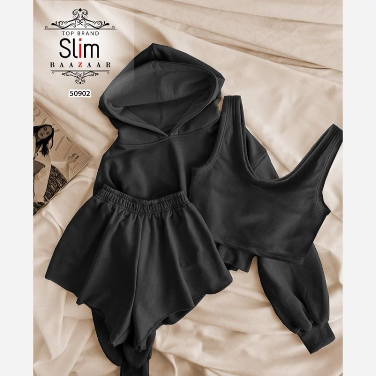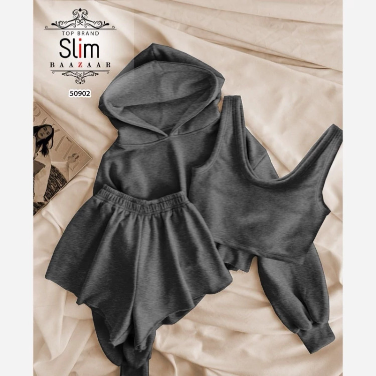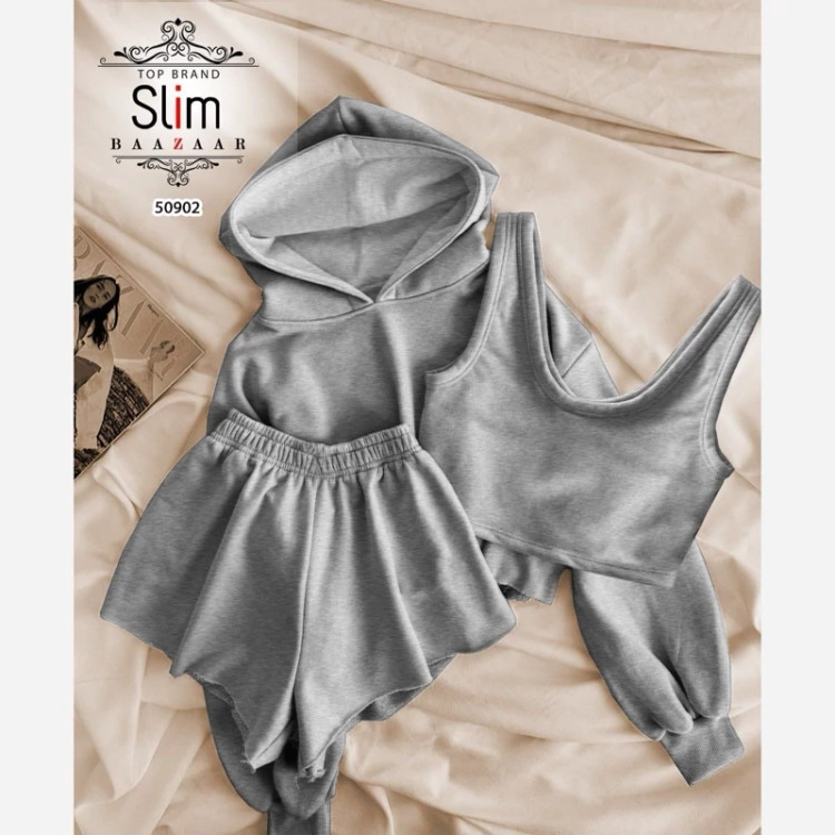 ست سه تیکه (هودی+شورتک دامنی+کراپ)