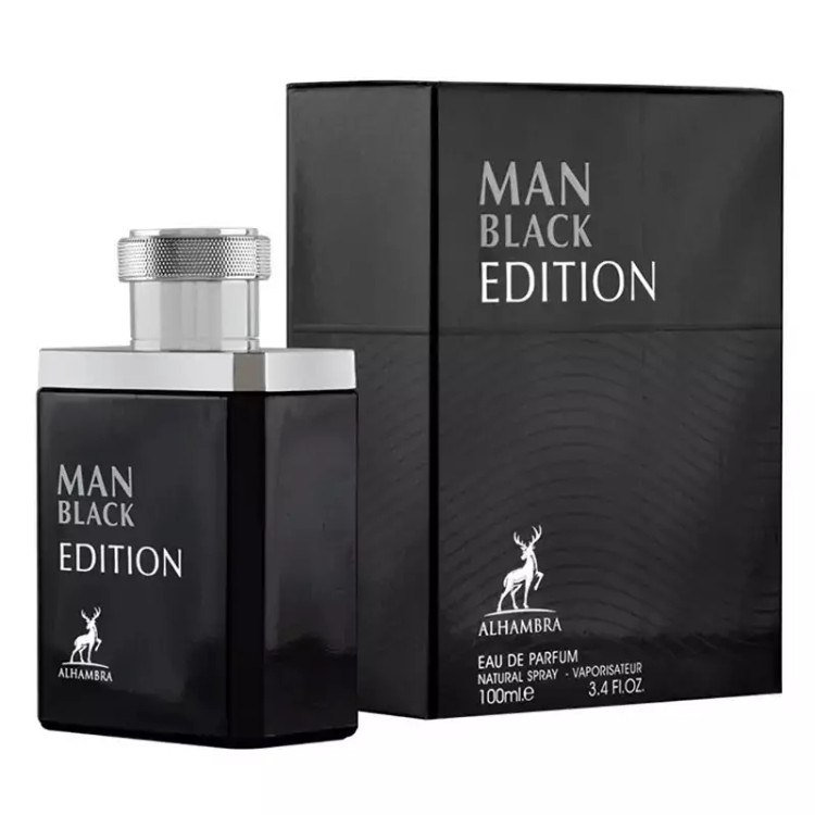 ادو پرفیوم مردانه الحمبرا مدل من بلک ادیشن با حجم 100 میلی لیتر | Alhambra Man Black Edition مشابه عطر معروف و جذاب مونت بلنک لجند Mont Blanc Legend است.