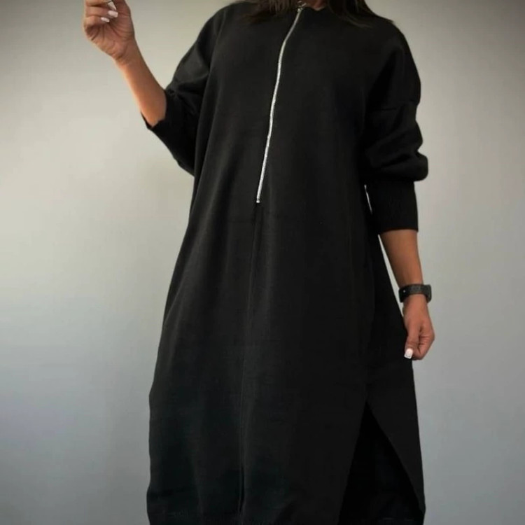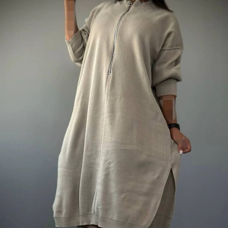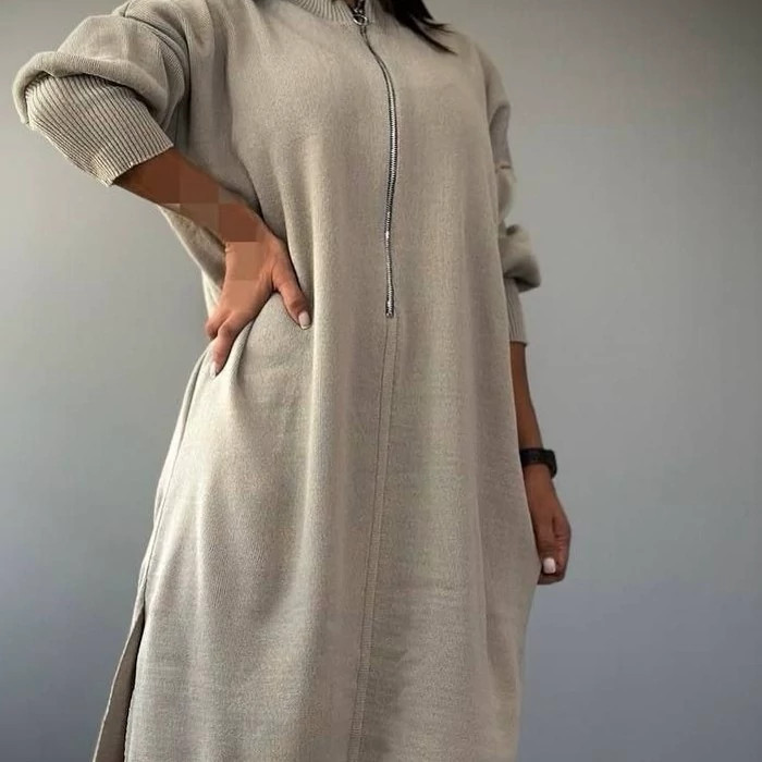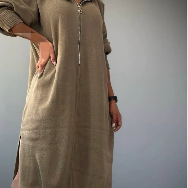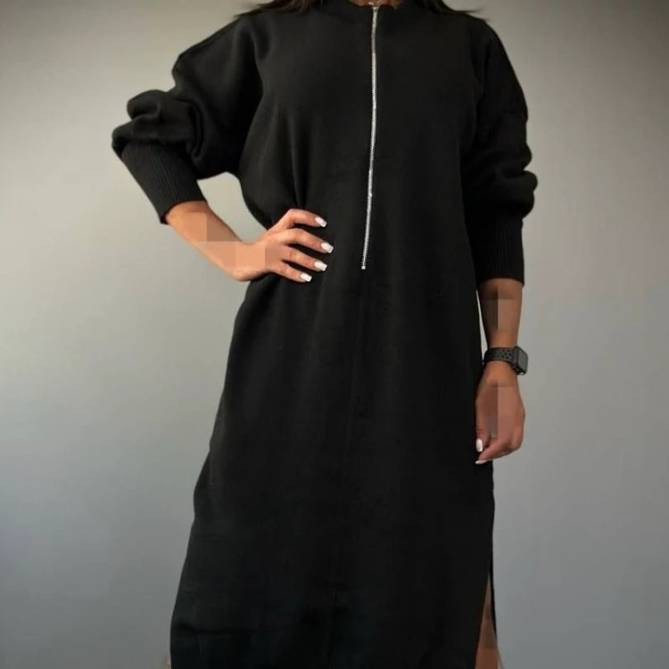 پیراهن بافت بغل چاک دار نیم زیپ زنانه و دخترانه