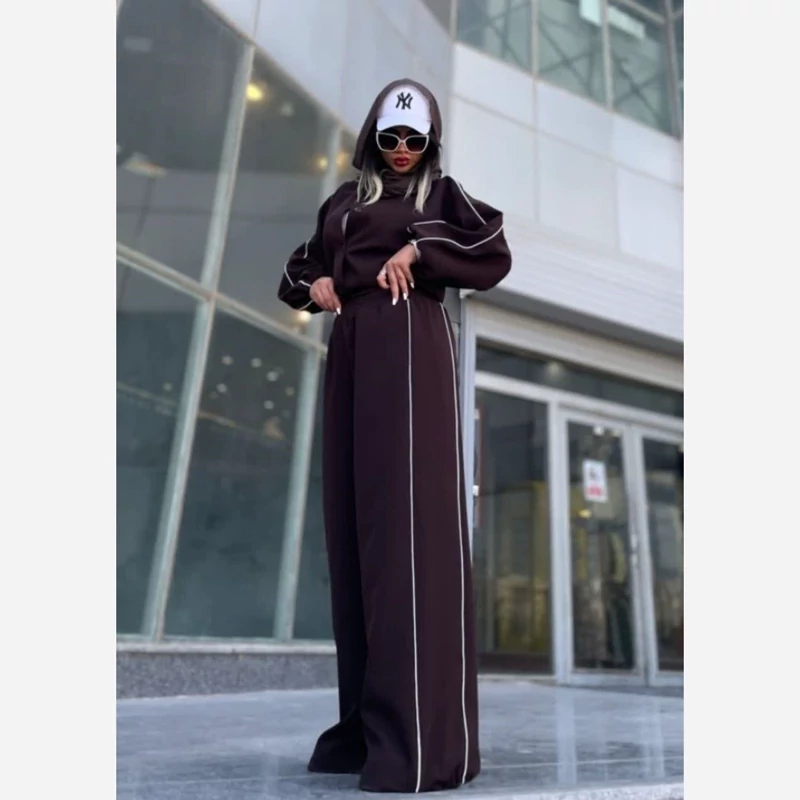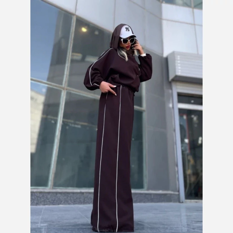 ست سویشرت شلوار مغزی دوزی کلاهدار