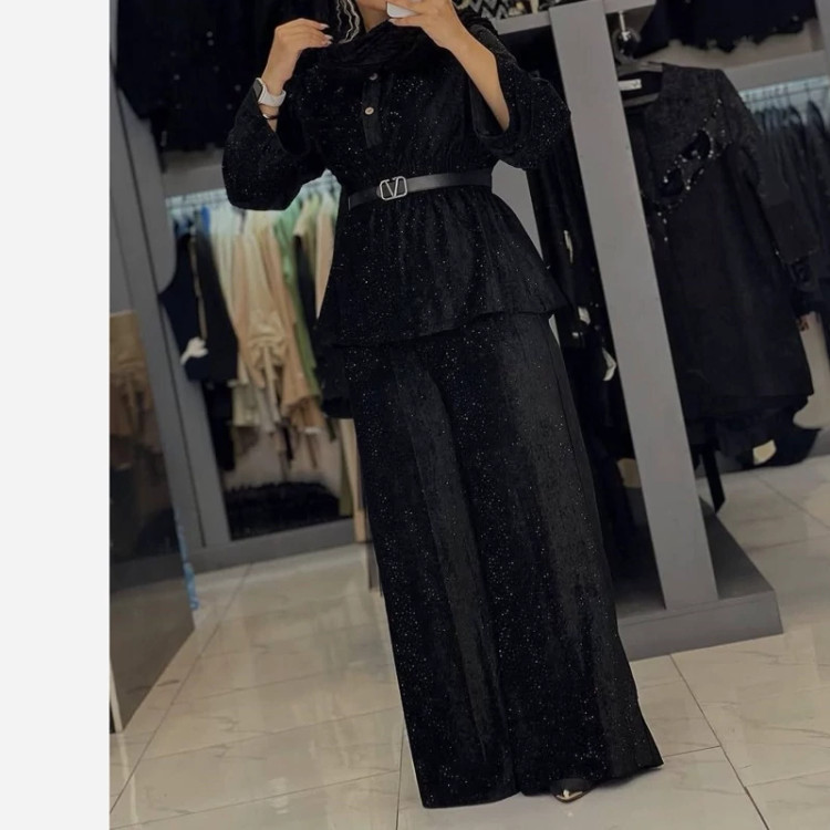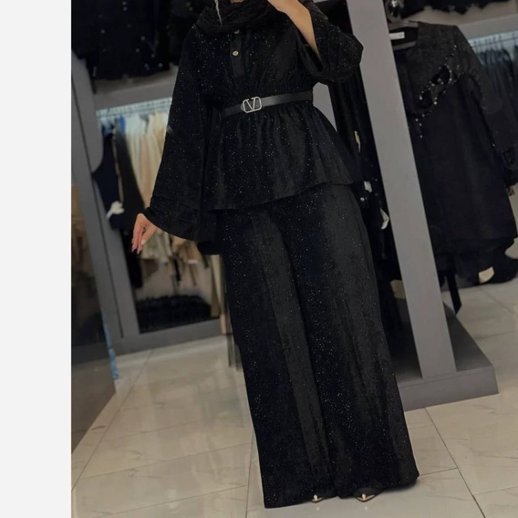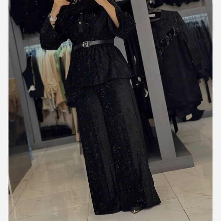 ست شومیز شلوار مخمل تمام نگین کاری شده