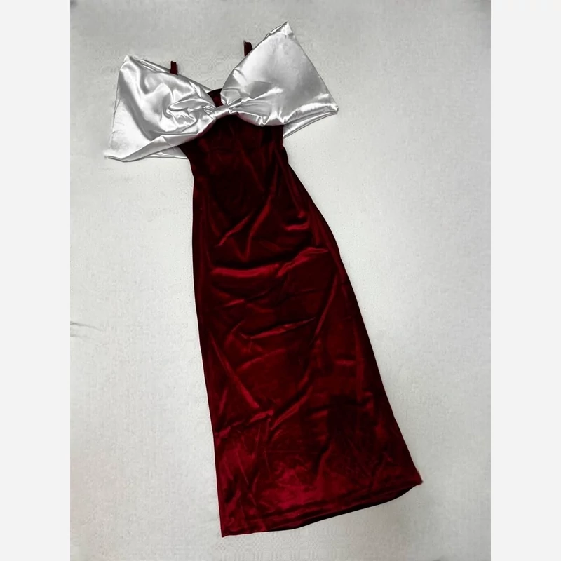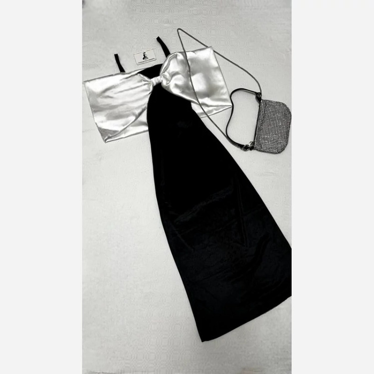 پیراهن مخمل پاپیون ساتن