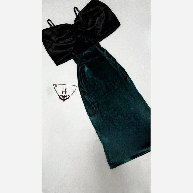 پیراهن بلند مخمل پاپیونی